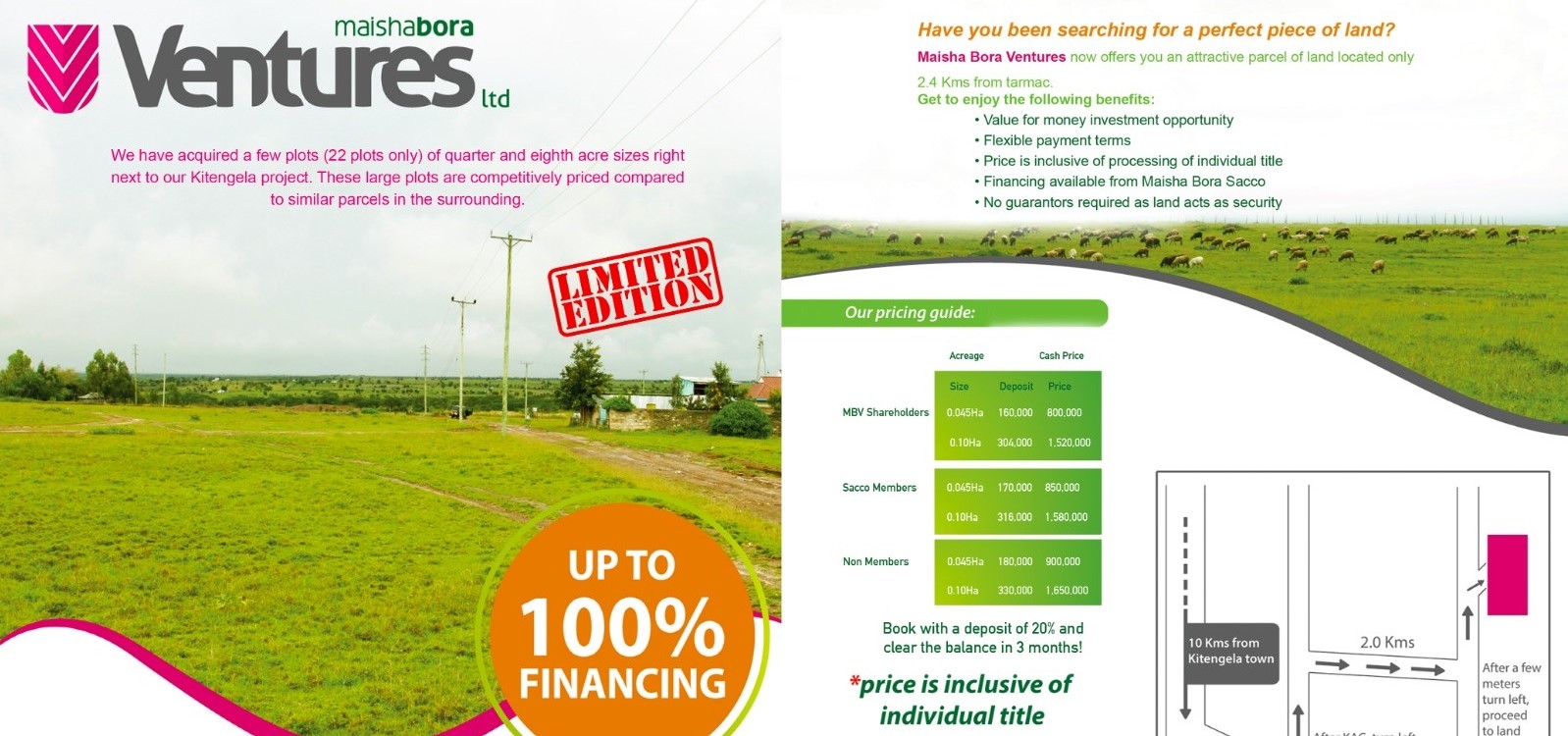 This is an exciting project for that discerning investor and an aspiring homeowner. Just 10 mins drive from Kitengela Town 2.4km off Kitengela- Namanga road behind KAG university.